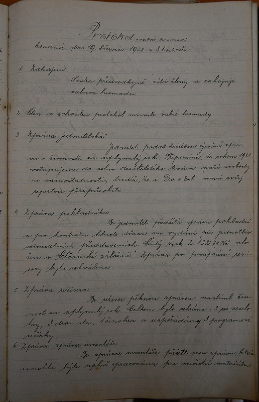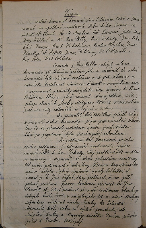 Nová Paka, Eliška Krásnohorská, Kniha protokolů, 1923 - 1938