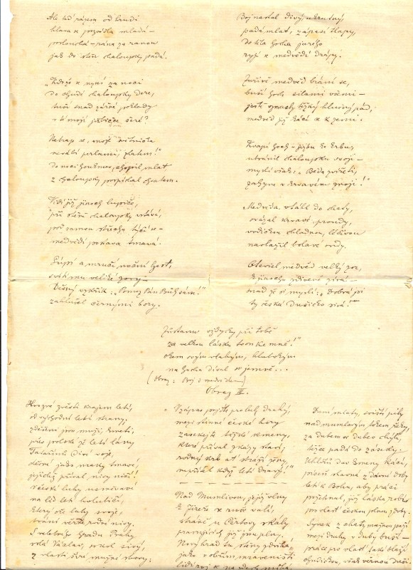 Vysoké n.J., Dopis K.V. Raise s přílohou básně pro živý obraz srazu rodáků 1885. Pověst o původu města Vysokého nad Jizerou, Rkp 8 s.