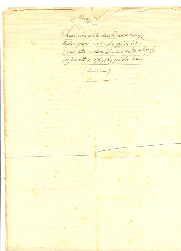 Proslov o slavnosti dvacítiletého trvání ochotnického divadla v Bělohradě. Rkp., 2 ll, fo