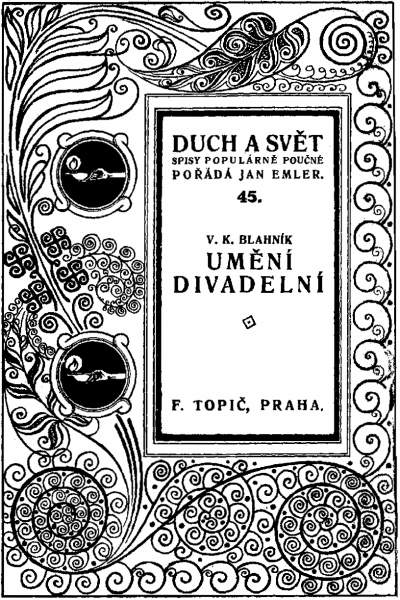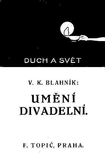 BLAHNÍK, Vojtěch Kristián: Umění divadelní. Praha, F. Topič (1919); Praha 1946. 154 s.