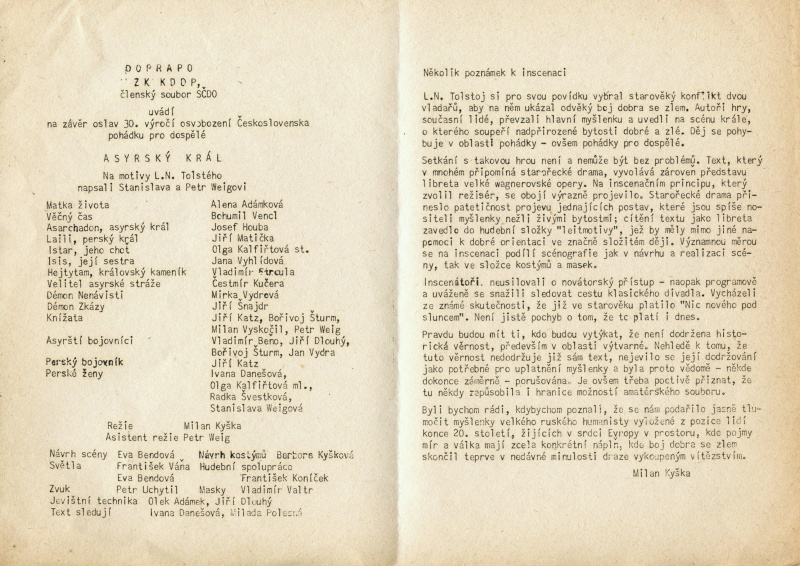 1972 – 2.12. – zapojení loutkářů – Skupina Amatérských Loutkářů / Jiří Beneš/ Cyril Bláha/ Božena Dalecká/ Marie Hejralová/ Miloš Honsa/ Karel Jiráček/ Bronislav Křanovský/ Ladislav Lhota/ Vlastimil Ondráček/ Josef Pšenička/ Antonín Stránský/ Eduard Vavruška – SAL PhDr.Stanislava Weigová (Valová)/MUDr.Miloš Blaha – SAL/Václav Cink/ Igor Dojiva/ Josef Hejtmánek/ Marie Horáková/ Václav Kalaš – SAL/ JUDr.Milan kyška/ Ludmila Masáková/ Jan Peška/ JUDr.Petr Slunečko – SAL/ Tabáčková/ Ing. Petr Weig/ Weiss/ UKRK – JUDr.Viktor Knobloch/ Tomáš Milička/ Josef Němec/ Alois Polák – SAL/ Josef Svoboda/. Předseda smírčí rady: JUDr.Zdeněk Kokta
