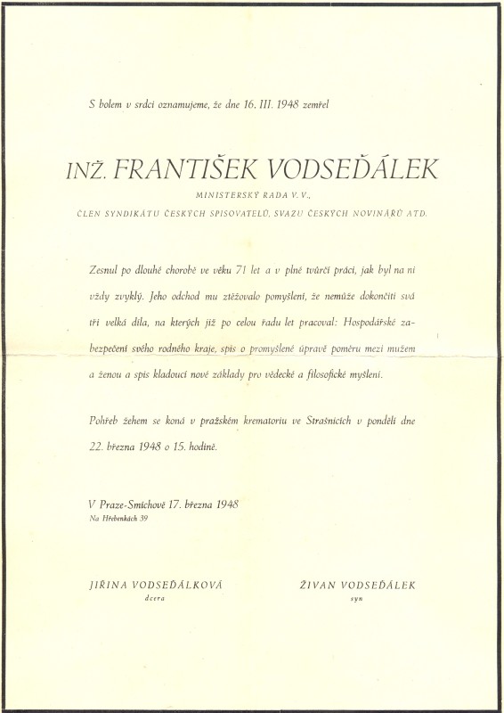 VODSEĎÁLEK, František, Ing, Vysoké nad Jizerou