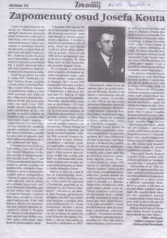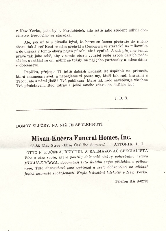 KOUT, Josef, Mnětice, Pardubice, New York