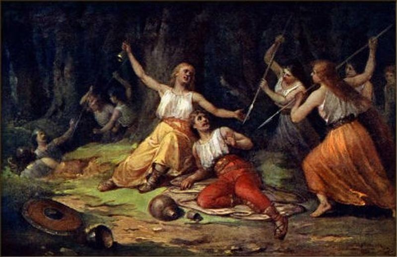 Setkání Libuše s Přemyslem, opona pro loutkářskou rodinu Dubských, 1937. Oponu podle obrazu Josefa Mathausera zhotovil malíř dekorací Jindřich Boška z Vlachova Březí. (Malované opony, s. 82)