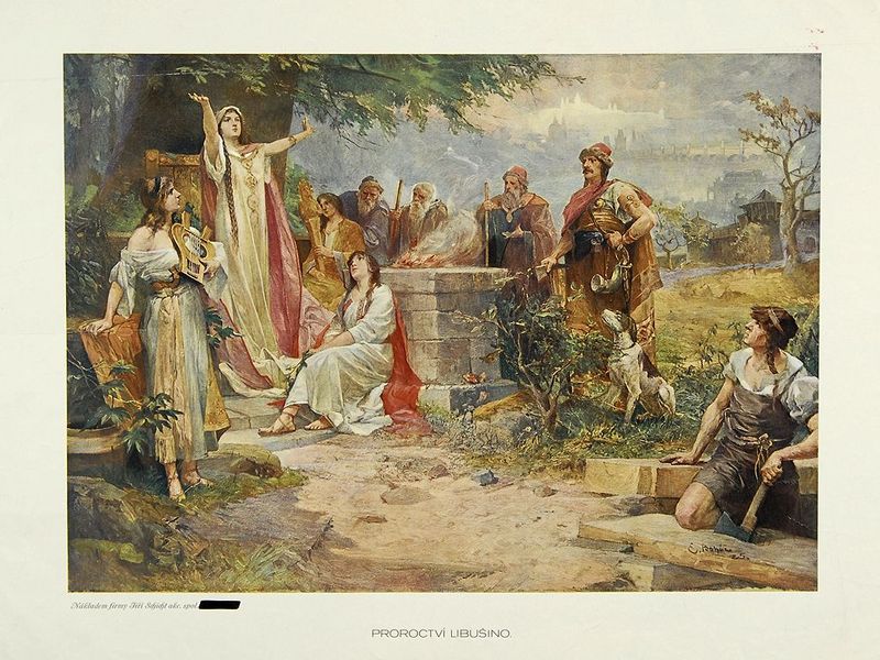 Obraz Proroctví Libušino se stával předlohou maleb opon pro ochotnická jeviště.