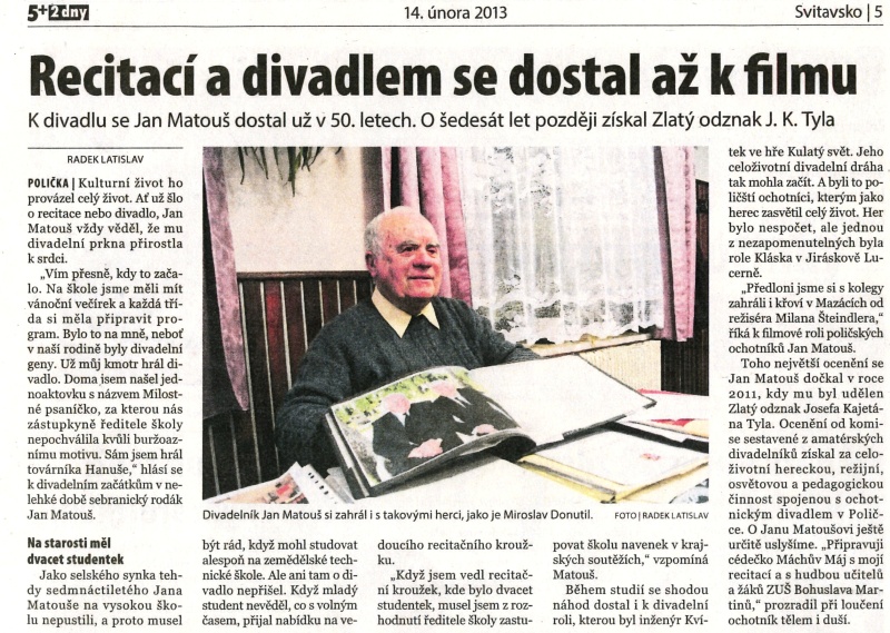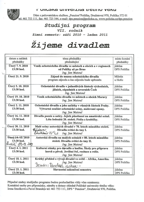 uspořádal několik besed v poličských středních školách o historii českého divadla,