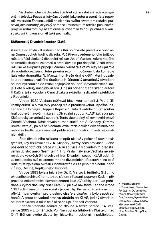 Vachata, Zdeněk, regionální historik a publicista, ochotnický herec a režisér zvl. v Klášterci n. Ohří