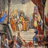 - Vraclav, předsálí Kulturního domu Vraclav, detail opony Odsouzení Vršovců, 1888