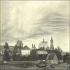 - Žireč, opona, Pohled na obec s dominantou kláštera, 1922, Josef Urban