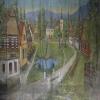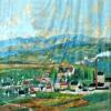 - Borohrádek, opona, veduta města, neznámý autor, umístění v aule ZŠ, 2013