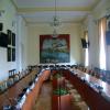 - Dobrovice, jeviště v sále radnice, opona Hynek z Valdštejna, majitel panství a hejtman dobrovický, odevzdává do rukou filozofů dekret založení latinské školy v Dobrovici, autor Václav Koutský, 1937, 1967 shořela