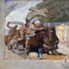 - Žatec, Oskar Brázda, detail z návrhu na oponu v expozici pozůstalosti malíře Oskara Brázdy, zámek Líčkov, 1948