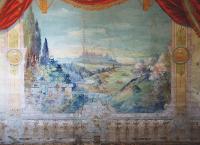 Sychrov (okres Liberec): Na divadelní oponě patrně Valdštejnský palác, přelom 18. a 19. století