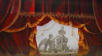 Holýšov (okres Plzeň-jih): Proscénium loutkového divadla s oponou Silák Ganymedés zápasí s orlem, 193x