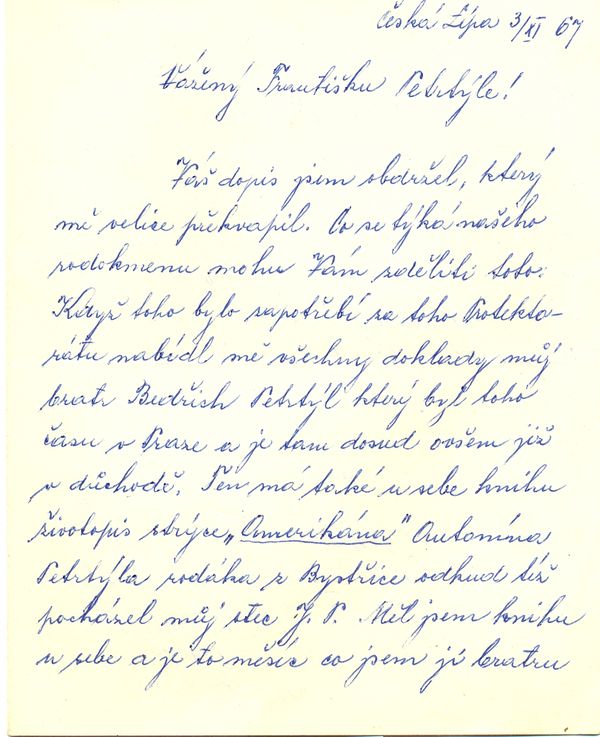 Před odjezdem do Ameriky mu dovolili bystřičtí divadelníci vzít si některé divadelní knížky s sebou.