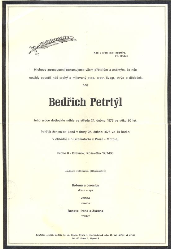 novinové články, fotografie a úmrtní oznámení Antonína Petrtýla.