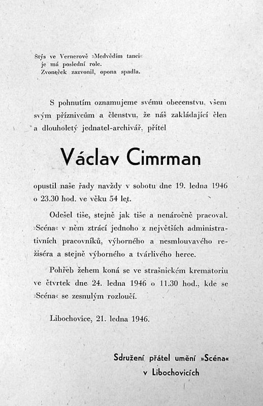 Zemřel 19. ledna 1946 v nemocnici v Lounech.