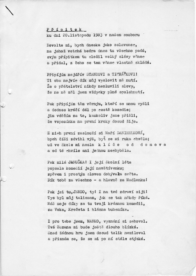 Poběžovice, Přípitek, báseň J. Pelikána, 1. strana, 1983