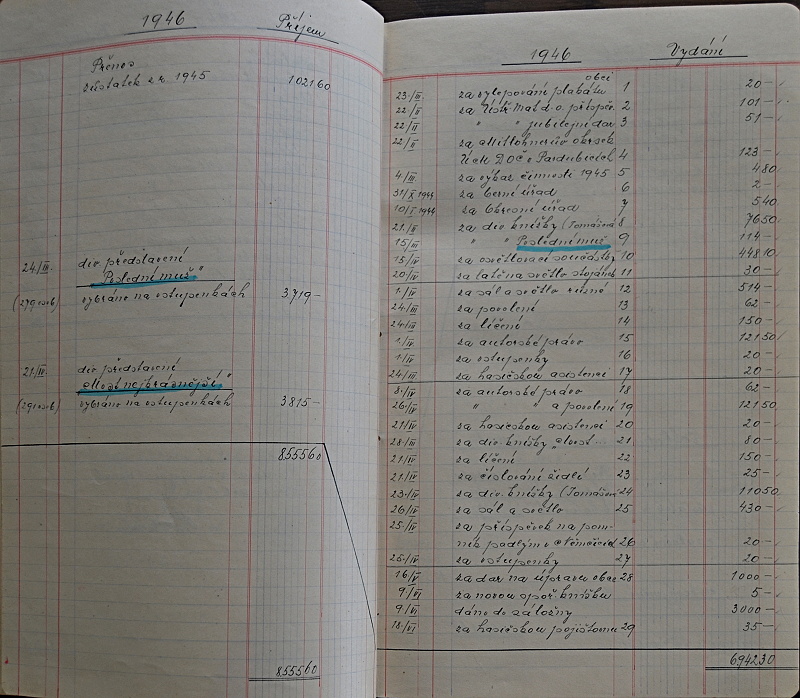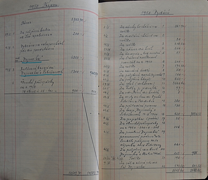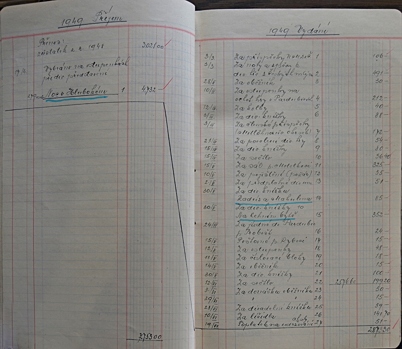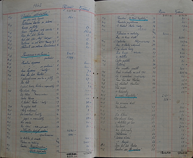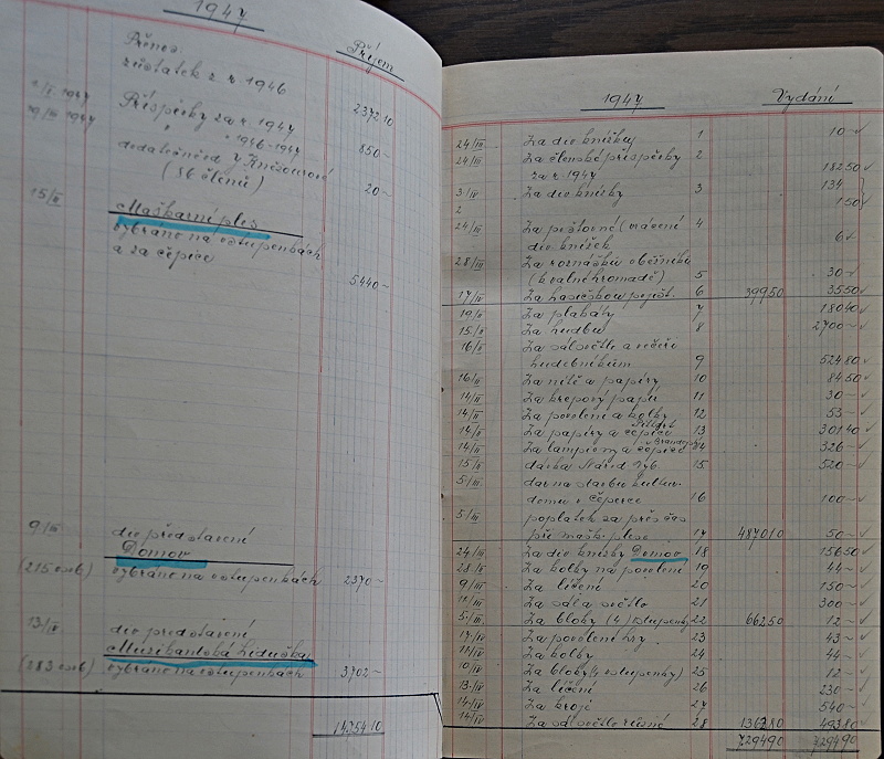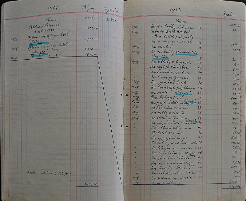 Čeperka, Tyl, Pokladní kniha, 1942 - 1957