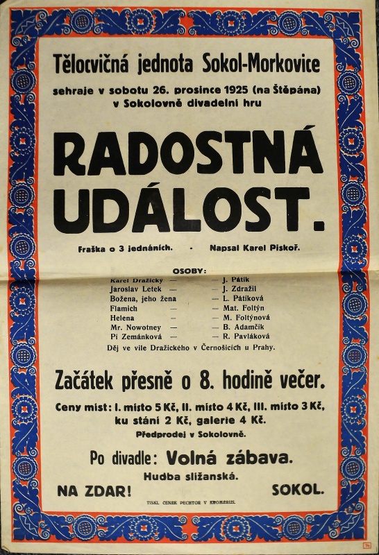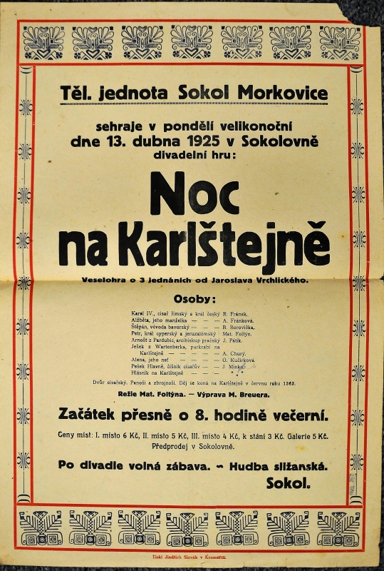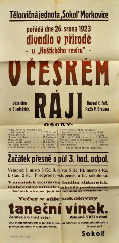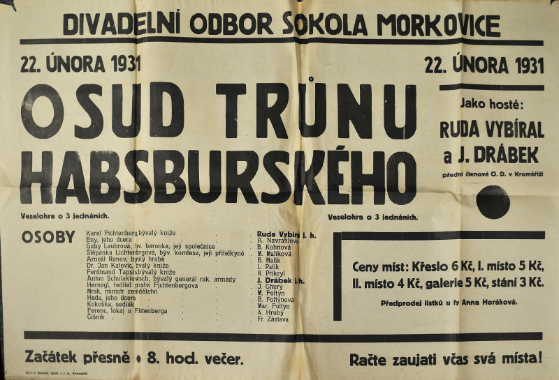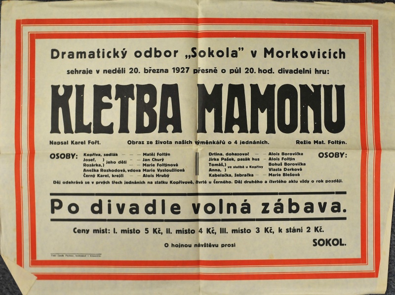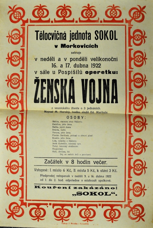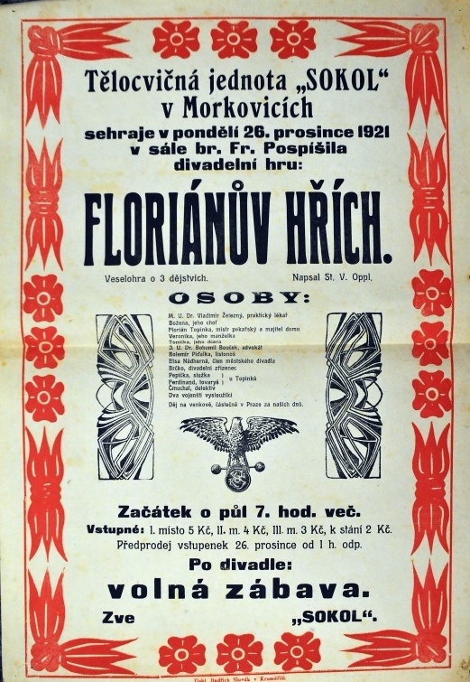 Morkovice, Sokol, Floriánův hřích - plakát, 1921
