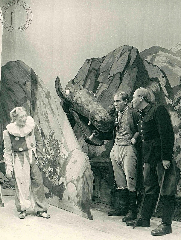 Chrudim, Ochotníci, Kašpárek, Šmidra a Škrhola bojují s drakem, 1941