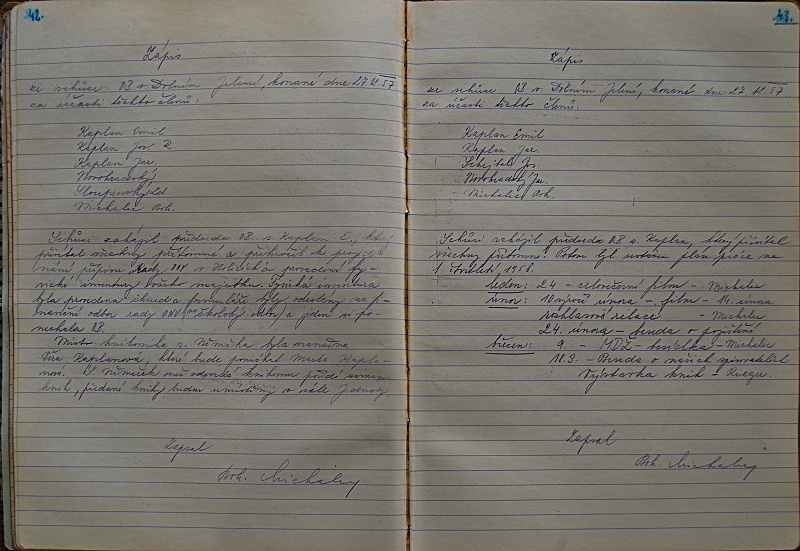 Dolní Jelení, Sdružení divadelních ochotníků, Zápisy ze schůzí, 1947 - 1959