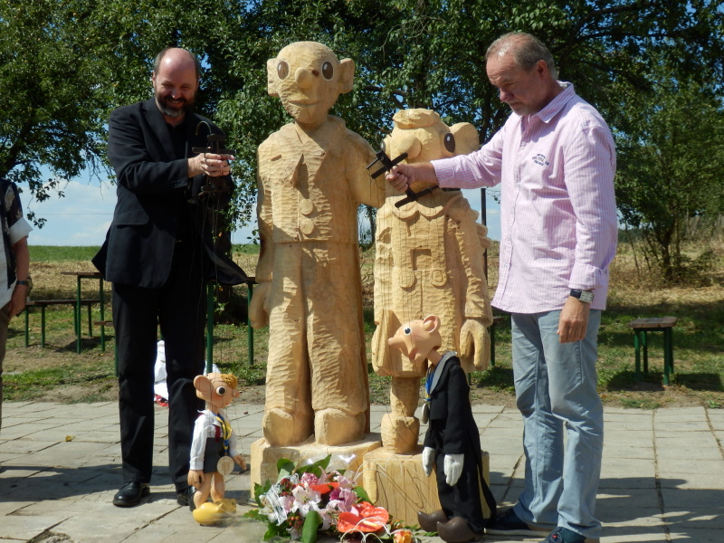 Mladějovice, Skupa, odhalení soch Spejbla a Hurvínka, 2013