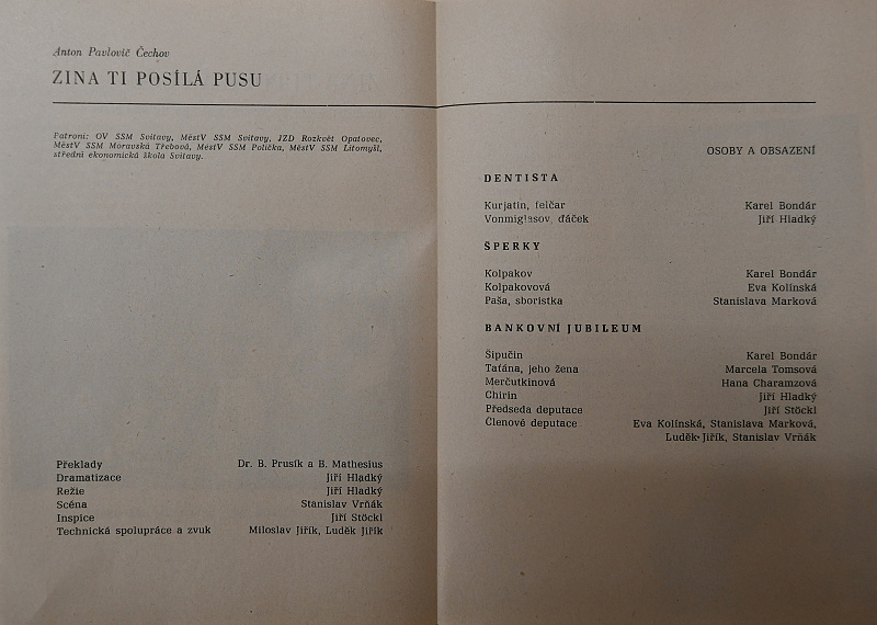 Zdroj: Hradec Králové, Státní okresní archiv, Hradec Králové, Krajské kulturní středisko, Impuls, Svitavy, Národní přehlídka ruských a sovětských divadelních her, 1975, Ka 42, i. č. 123 Foto Jiří Němec 2020