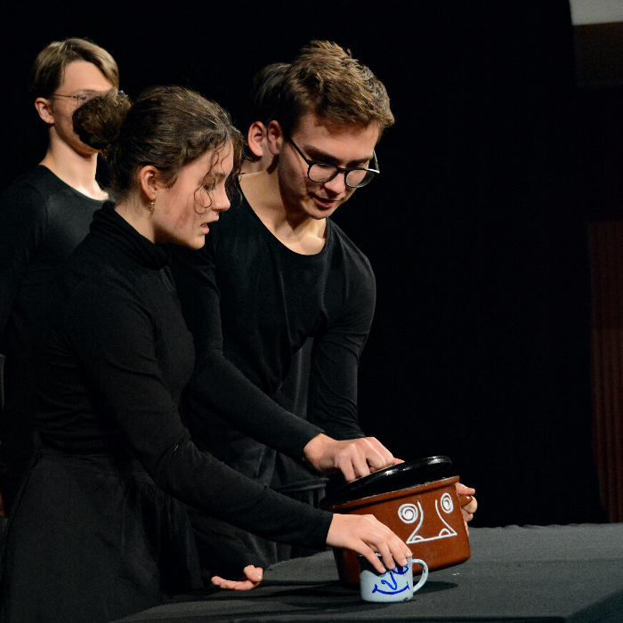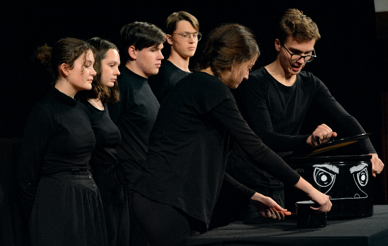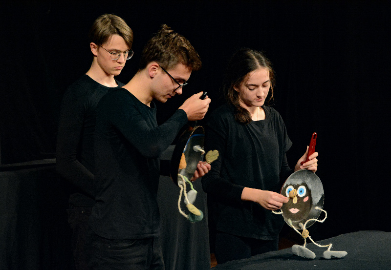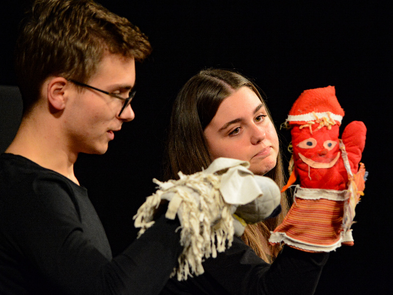 Divadlo Štěkátko Opava, Daniel Kollmann podle klasických pohádek: Z pohádky do pohádky. Dramatizace, dramaturgie, režie a scénografie Daniel Kollmann, loutky soubor a Daniel Kollmann, hudební doprovod Filip Ország. Premiéra 19. 12. 2021.