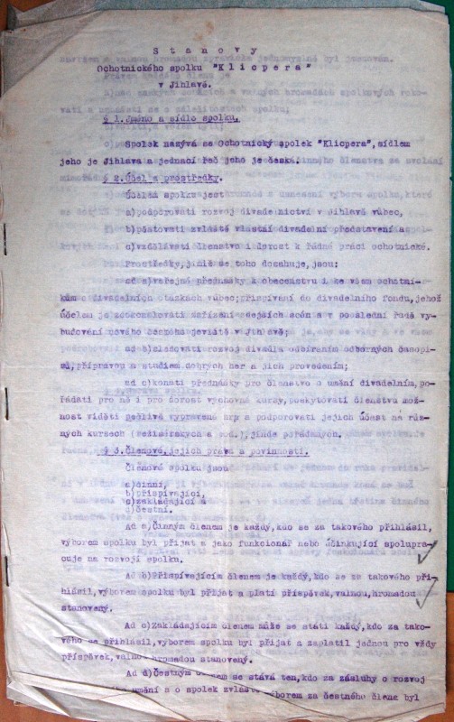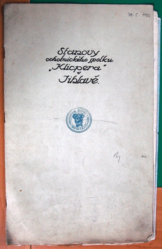 Jihlava, Klicpera, korespondence spolku,spolkové stanovy, 1926