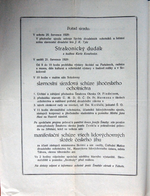 Tábor, Sjezd jihočeského ochotnictva, program 1929