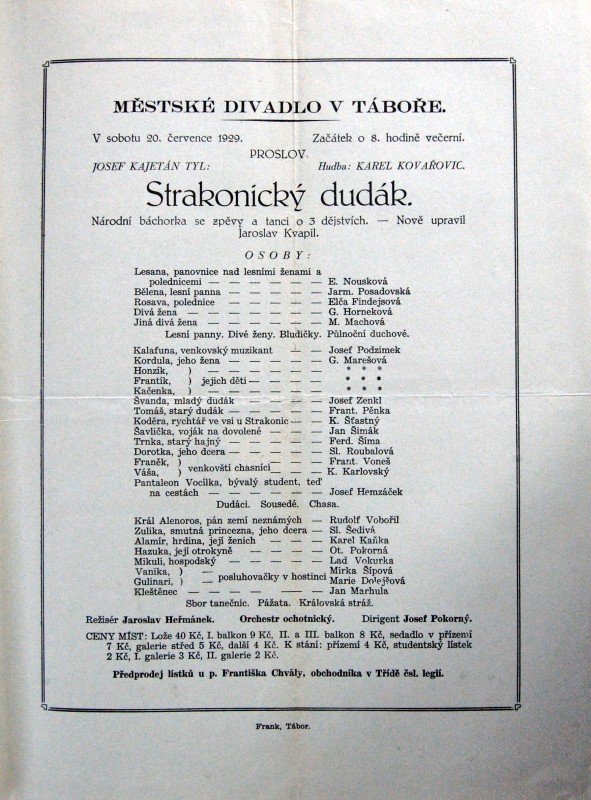 Tábor, Intimní scéna, Strakonický dudák, 1929