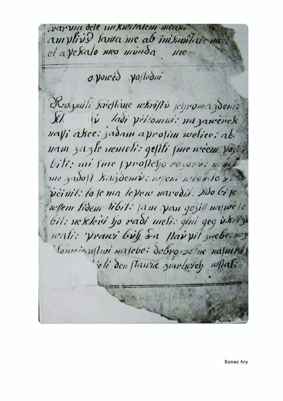 Vlastibořská hra, s.123. Konec se seznamem rolí