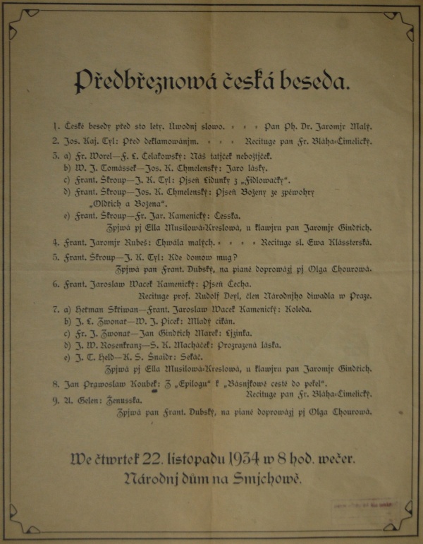 1924-1951 Vzdělávací a div. beseda Vrchlický. 1924 členy ÚMDOČ.