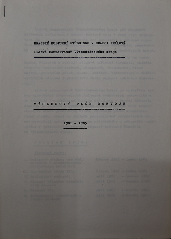 - Hradec Králové, Krajské kulturní středisko, Impuls, 1975 - 1990, Plán rozvoje, 1981 - 1985