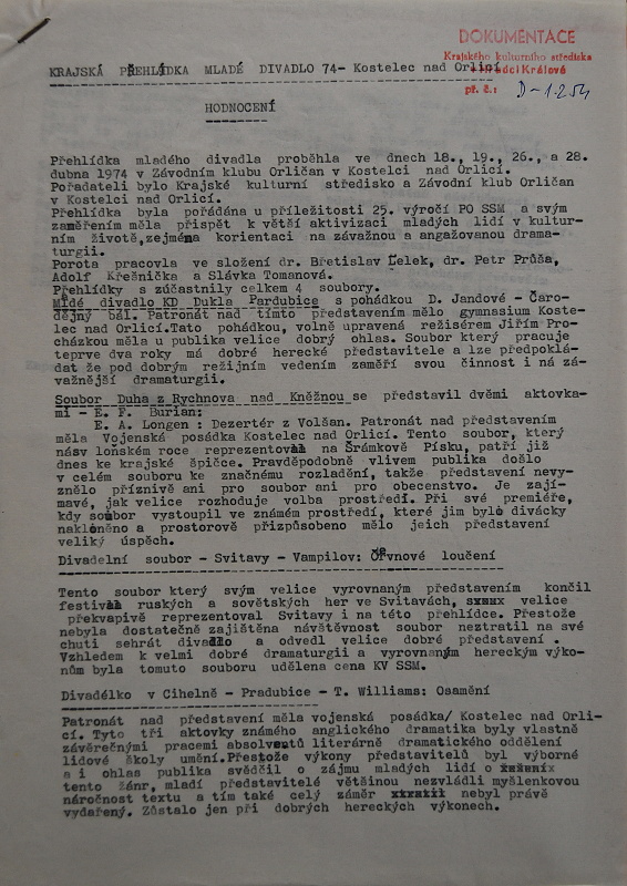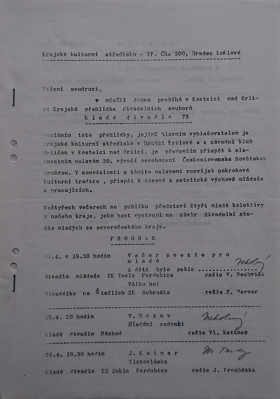 - Hradec Králové, Krajské kulturní středisko, Impuls, Úpice, Festival současné divadelní tvorby, 1975
