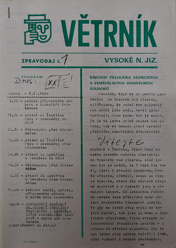 - Hradec Králové, Krajské kulturní středisko, Impuls, Vysoké nad Jizerou, NP Krakonošův divadelní podzim, 1990