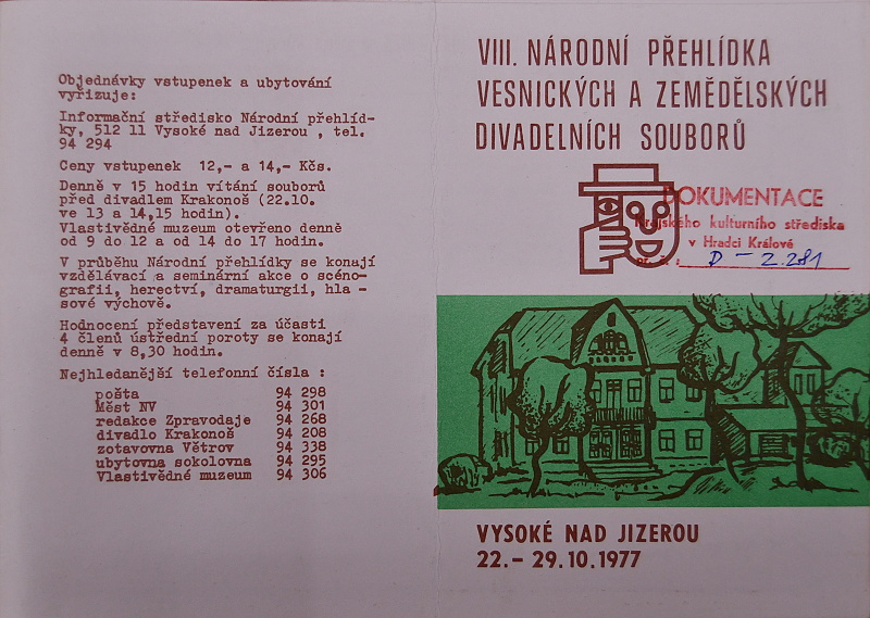 - Hradec Králové, Krajské kulturní středisko, Impuls, Vysoké nad Jizerou, NP Krakonošův divadelní podzim, 1977