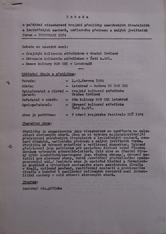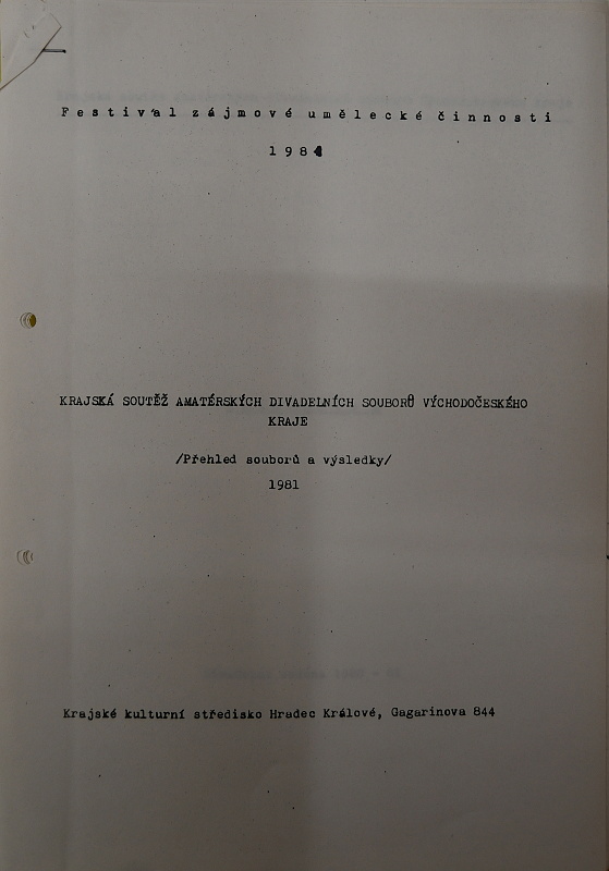 - Hradec Králové, Krajské kulturní středisko, Impuls, Úpice, Festival současné divadelní tvorby, 1984