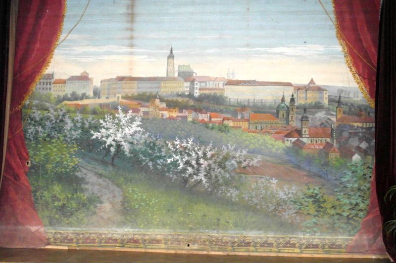 - Rožďalovice, sál radnice, opona, Hradčany, kvetoucí Petřín, Josef Wenig, 1905