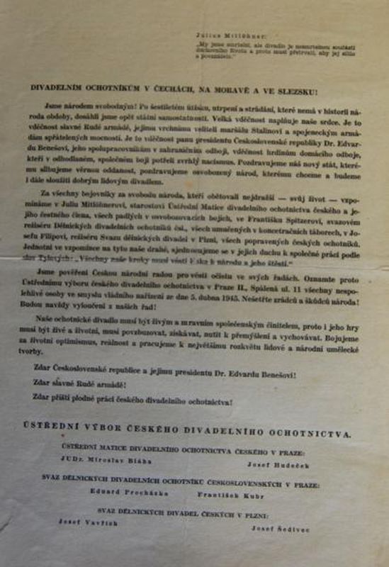 Levicově, komunisticky orientovaný František Kubr byl stálým členem ústředního hereckého souboru SDDOČ.