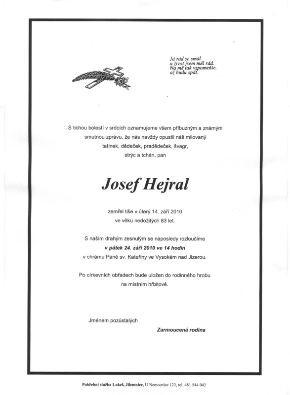 HEJRAL, Josef st., Vysoké nad Jizerou