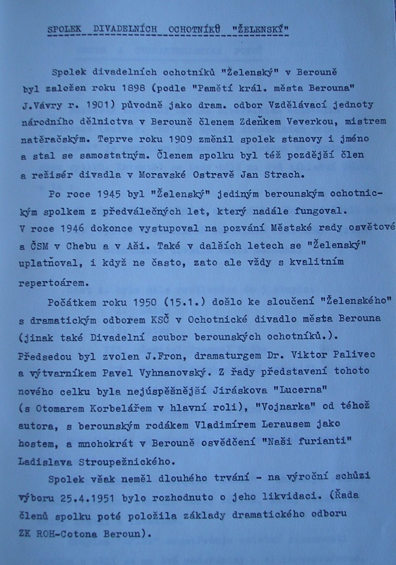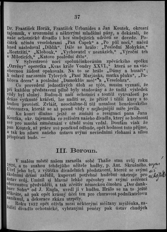 - Beroun, Počátky divadla berounského, 1826-1833. rkp.