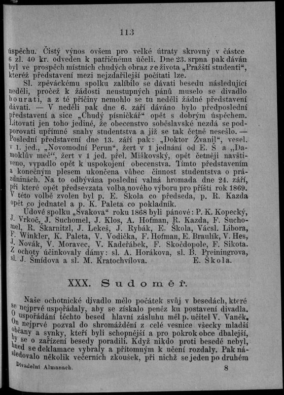 - SEMRÁD, Vladimír: Dva proudy v minulosti našeho ochotnictví.