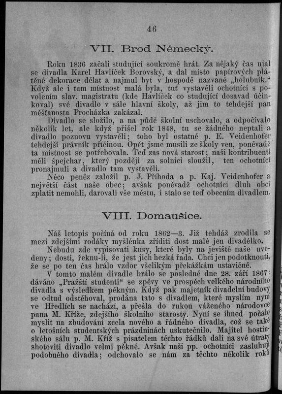 - ŠUBERT, František Adolf: O významu českého divadla ochotnického.