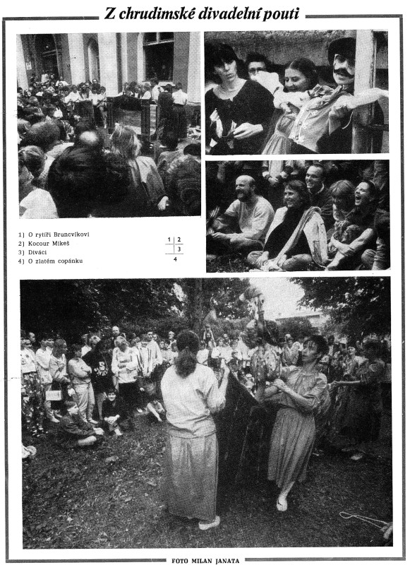 Zdroj: Foto Milan Janata. VAŠÍČEK, Pavel: Díky Bohu je v českém divadle možné takřka vše...čili 39. Loutkářská Chrudim očima porotce. Loutkář 1990, č. 11, s. 242–243.