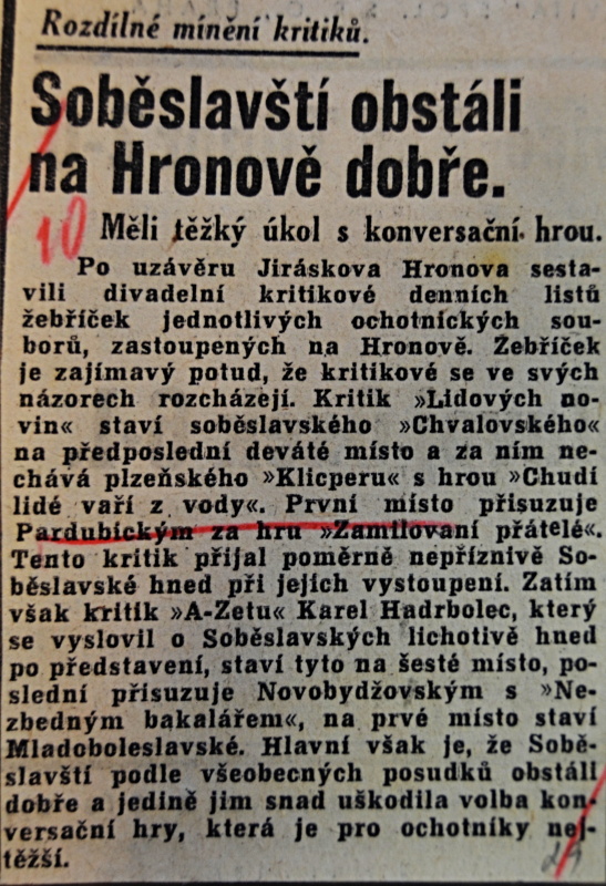 RYDVAN, Jakub: Hronovské slavnosti měřítkem práce ochotnické. U nás, 8. 8. 1941, s. 1.