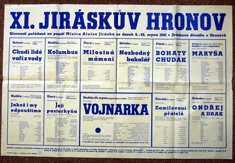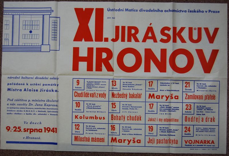 XI. JIRÁSKŮV HRONOV 1941, 9.-24. VIII. 1941. Programový sborník. Red. Dr. M. Bláha. Hronov, ÚMDOČ 1941. 59 s.