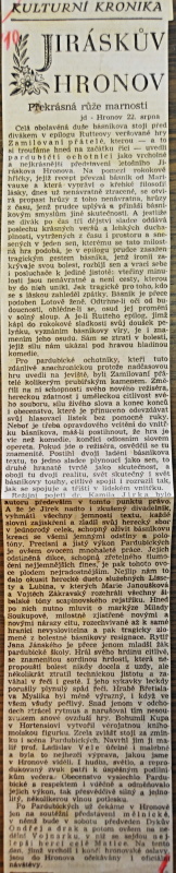 KOPECKÝ, Jan: XI. Jiráskův Hronov jako závazek. České slovo, 12. 8. 1941, s. 6.