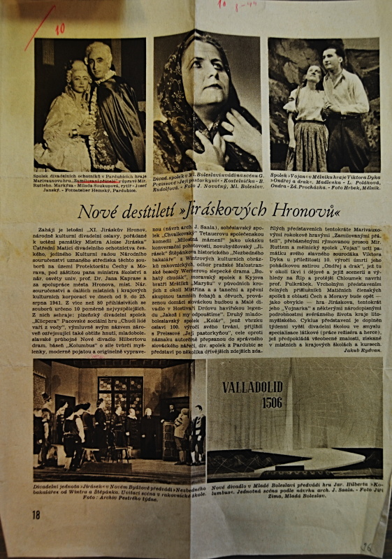 VZDĚLÁNÍ ochotnictva. Zpráva o divadelní škole na XI. Jiráskově Hronově. Polední list, 20. 6. 1941, s. 2.